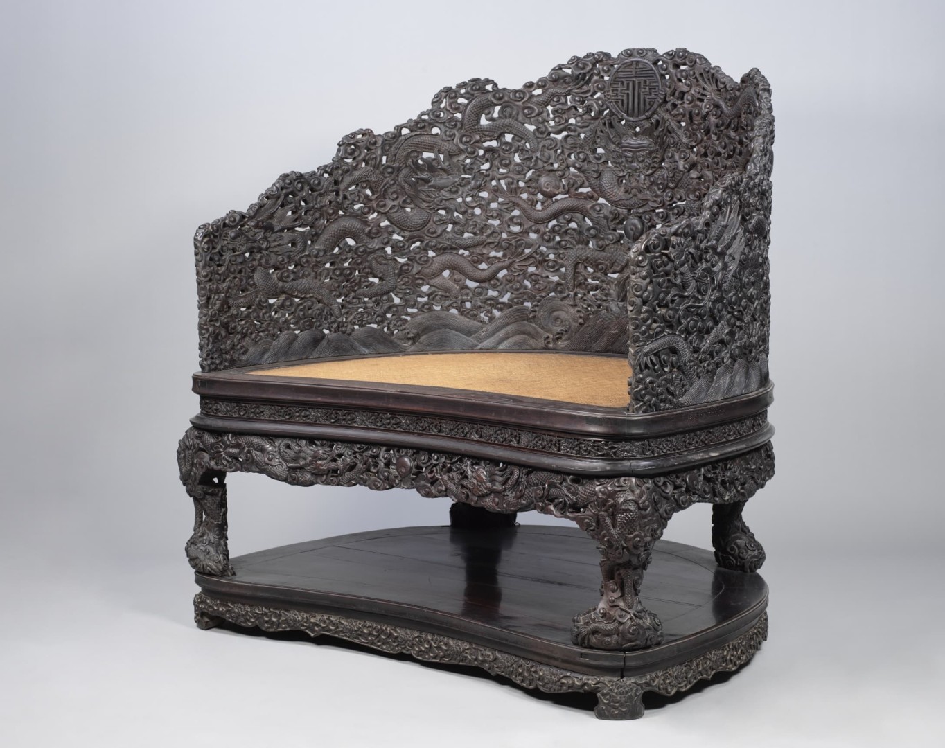 紫檀透雕云龙纹有束腰带托泥宝座