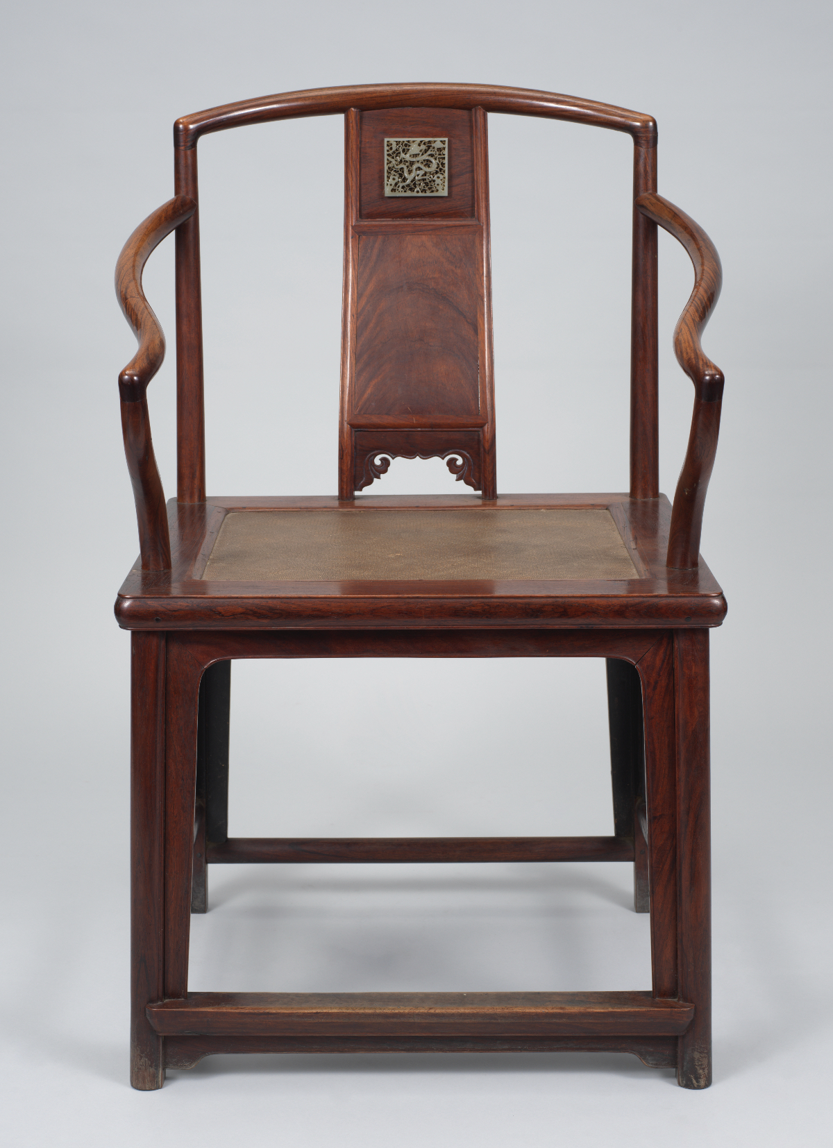 黄花梨嵌玉南官帽椅