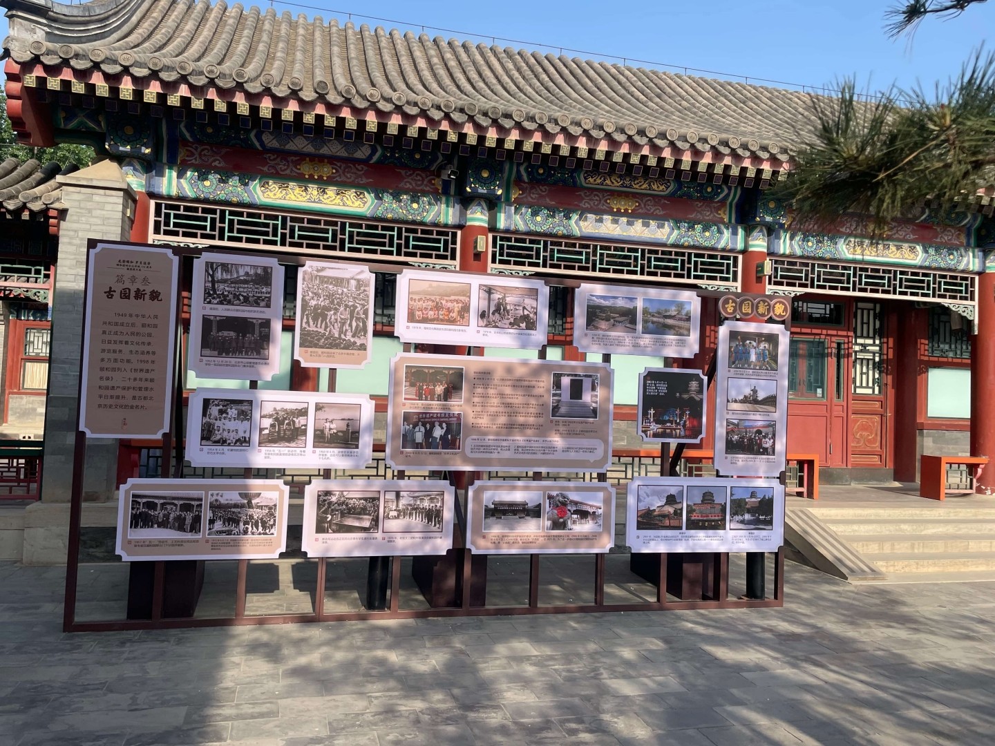 本次展览选取了颐和园从清漪园时期至今跨越近200年的新老照片百余张。展览内容以时间为轴分为三个单元,分别为颐和旧景、公园初建和古园新貌。展示中,照片辅以年代、作者、概述等内容,生动形象、系统地展现了颐和园百年历史、描绘了颐和园重塑新颜的过程,展示了颐和园高质量发展中的重大事件和为人民服务的历程。