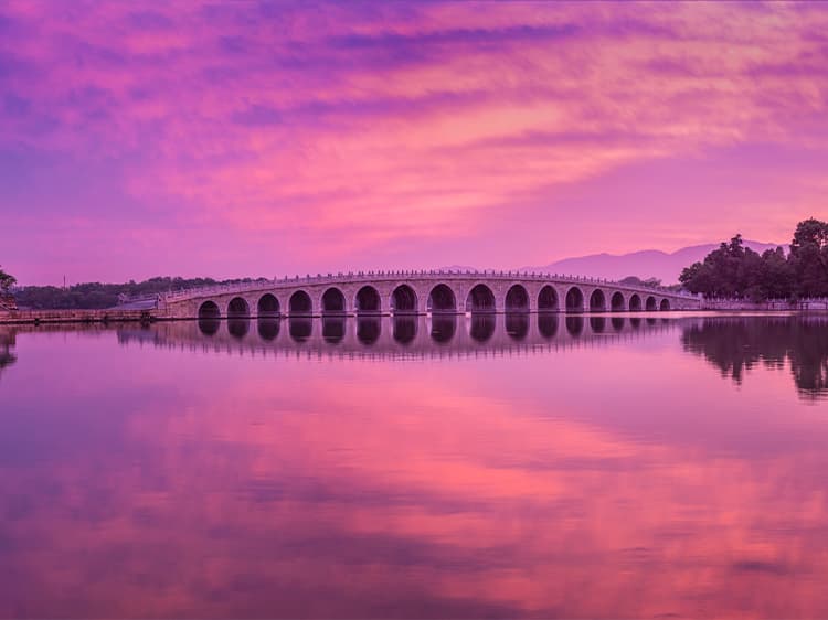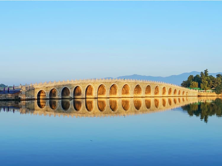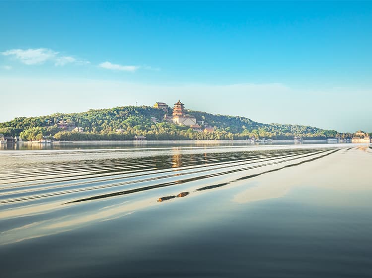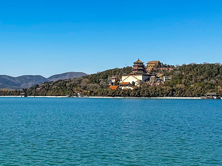 原为北京西北郊众多泉水汇聚而成的天然湖泊,曾有大泊湖、瓮山泊等名称。元朝定都北京后,为兴漕运,经水利专家郭守敬主持,引昌平神山泉水及沿途流水注入湖中,成为大都城内接济漕运的水库。明代湖中多植荷花,周围水田种植稻谷,湖旁又有寺院、亭台之胜,酷似江南风景,遂有西湖、西湖景之誉。乾隆皇帝修建清漪园时将湖展拓为现在的规模,并取汉武帝在长安开凿昆明池操演水战的故事,命名为昆明湖,总面积达二百余公顷,约占全园总面积的四分之三。按照中国历代皇家园林“一池三山”的理水方式,在湖内建有“南湖岛”“治镜阁岛”和“藻鉴堂岛”三个中心岛屿,并且仿照杭州西湖的苏堤修建成西堤。粼粼的湖水,蜿蜒的堤式,错落的岛屿,以及隐现在湖畔风光中的各式建筑,组成了颐和园中以水为主体的绝色风景。二十世纪九十年代经多学科分析研究证明,该湖已有三千五百年的历史。