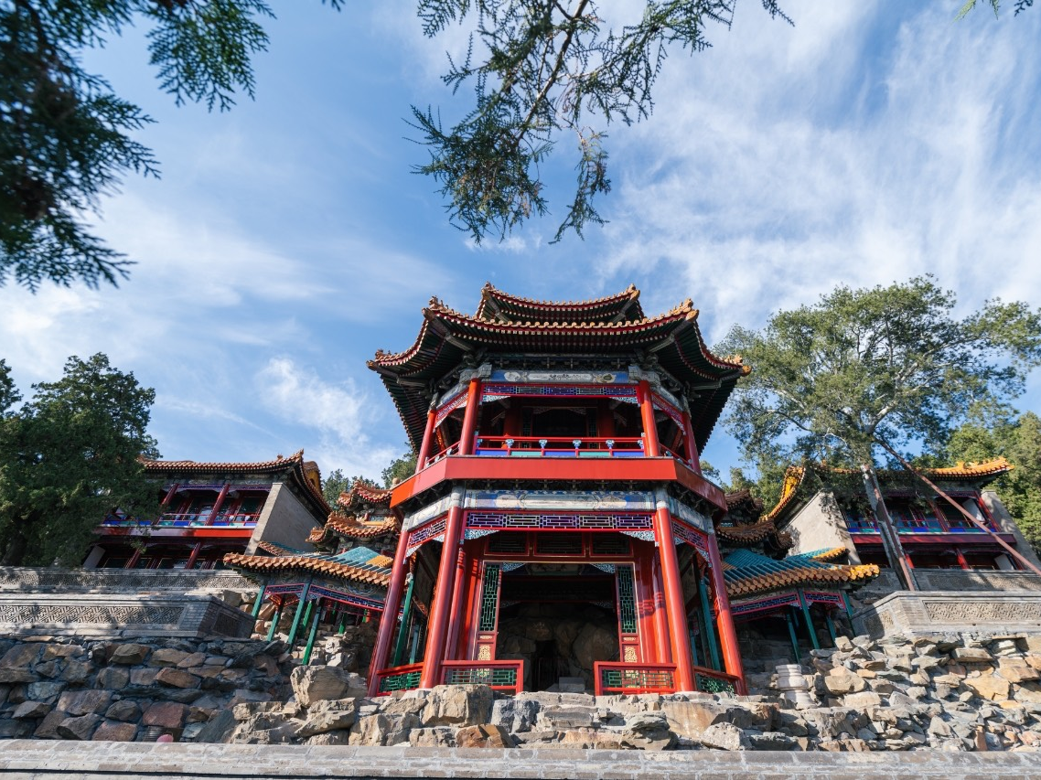 始建于乾隆年间,一八六〇年大部分建筑被英法联军烧毁,光绪年间重建,是万寿山西部重要的建筑,中为八角两层楼阁,东西配置两亭两楼,后有白石牌坊和正殿三间,均有爬山廊相连接。由于建筑倚山而筑,视野开阔,循廊观景,仿佛置身画中,故名“画中游”。